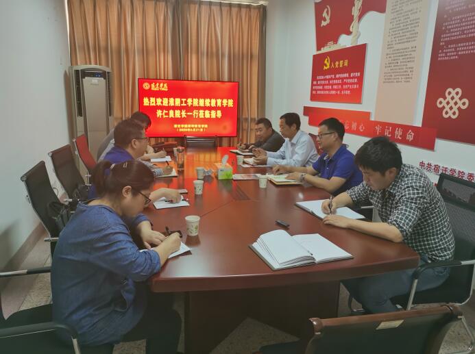 刘延陵院长代表继续教育学院欢迎兄弟院校淮阴工学院领导到访,并介绍了学院发展的总体情况。通过相互交流和学习,双方进一步拓展了发展思路,表示将继续以提高办学质量为核心,进一步深化改革、激发活力,为稳定继续教育可持续发展夯实基础。