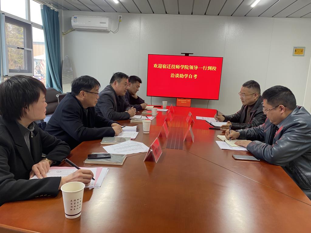 为发挥自考助学功能,服务宿迁教育事业高质量发展,落实宿迁市自学考试工作会议精神,3月15日,宿迁技师学院继续教育学院李成建院长、学前教育系王淼主任一行到我校交流自考助学工作。继续教育处张进处长等出席交流会。